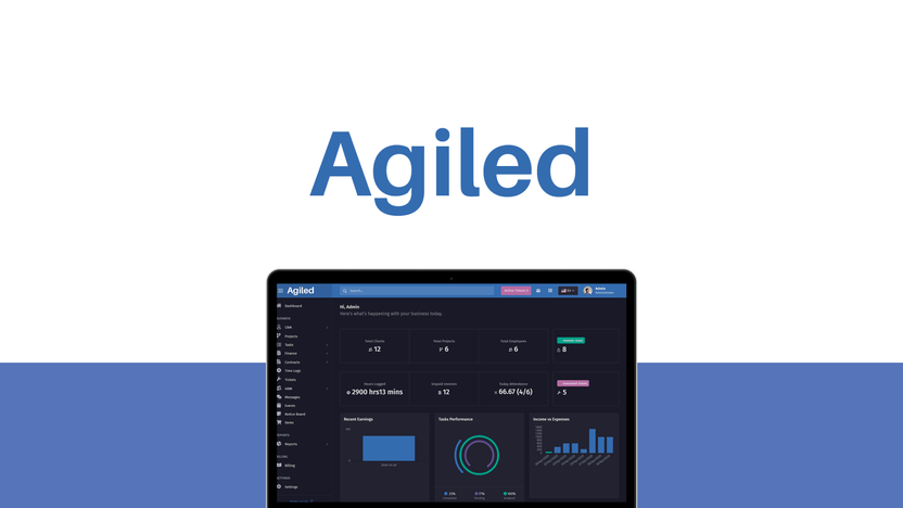 Agiled is an all-in-one, white-label ready business management platform for managing clients, leads, finance, projects, tasks, employees, and more.
