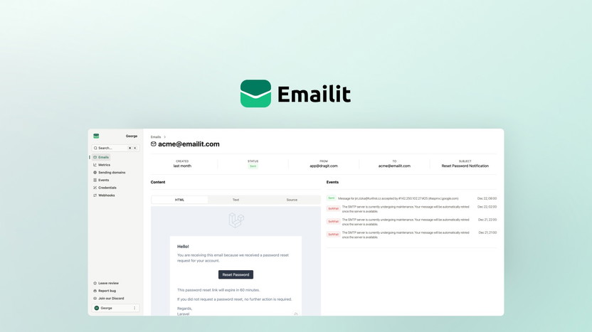 Meet Emailit—the email API that’s as easy to integrate as it is powerful to use. Whether you’re a developer looking to send transactional emails or manage your newsletters, Emailit has you covered.