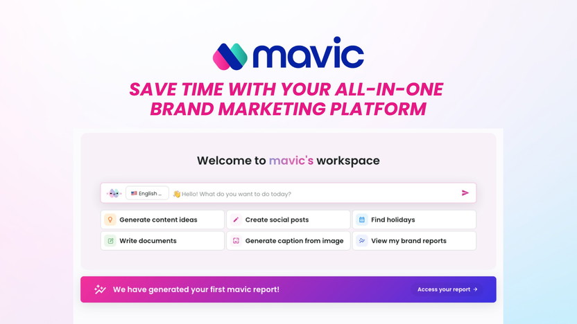 mavic is an all-in-one AI marketing platform built for time-strapped businesses and marketers. mavic offers instant brand strategies, marketing ideas, market research, one-click content generation, and social media management.
